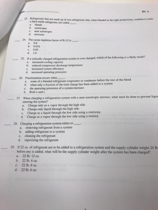 If a critically charged refrigeration system. Weighing in while charging is fairly obvious and its useful so you can keep track of what you are using and how much to charge a customer. Refrigerants that are made up of two refrigerants that when blended when blended in the right proportions combine to make a third stable refrigerant are called ________________. June 14 1993 35.
